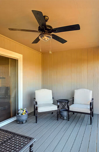 Installation of weather-rated outdoor ceiling fans for patios, alfresco areas, and balconies with moisture-resistant components.