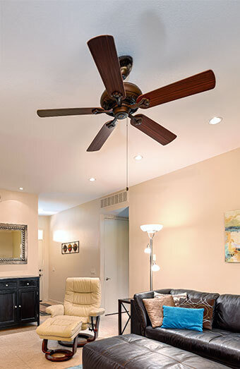 Energy-efficient DC motor fan installation offering quieter operation, more speed options, and significant power savings.